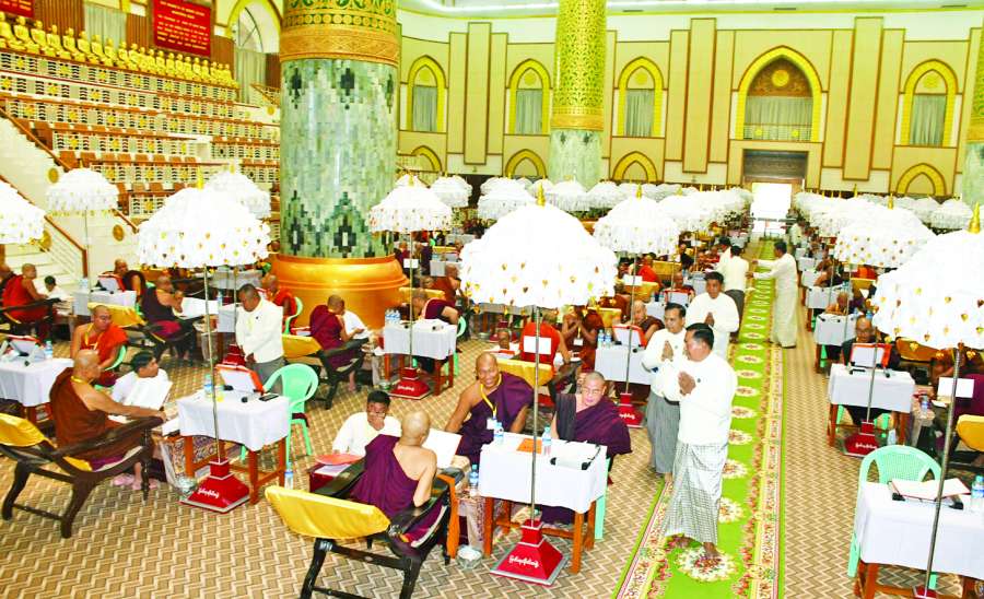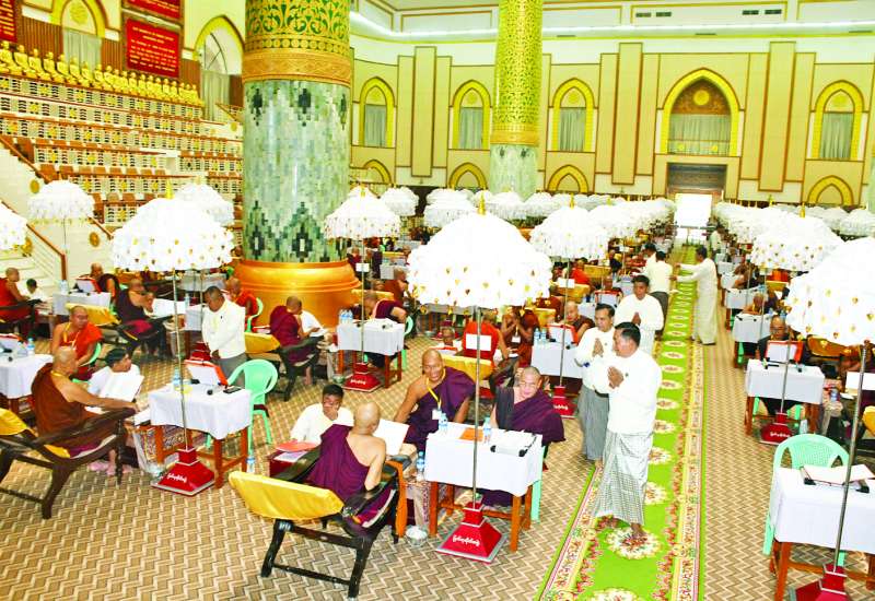 (၇၈)ကြိမ်မြောက် တိပိဋကဓရ တိပိဋက ကောဝိဒ ရွေချယ်ရေးစာမေးပွဲကြီးကို ရန်ကုန်မြို့သီရိမင်္ဂလာ ကမ္ဘာအေးကုန်းမြေ မဟာပါသာဏ လိုဏ်ဂူသိမ်တော်ကြီး၌ ကျင်းပလျက်ရှိရာ အာဂုံ ပြန်ဆိုတော်မူကြသော စာပြန်သံဃာတော်တို့အား သာသနာရေးနှင့်ယဉ်ကျေးမ