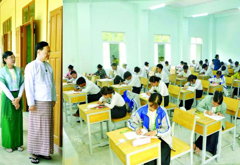 ပညာရေးဝန်ကြီးဌာန ဒုတိယဝန်ကြီး ဒေါက်တာဇော်မြင့်သည် တာဝန်ရှိသူများနှင့်အတူ ယနေ့နံနက်ပိုင်းတွင် မိတ္ထီလာမြို့ရှိ မိတ္ထီလာတက္ကသိုလ်၊ မိတ္ထီလာစီးပွား ရေးတက္ကသိုလ်နှင့် မိတ္ထီလာပညာရေး ဒီဂရီကောလိပ်များတွင် စာမေးပွဲဖြေဆိုကြမည့် တက္ကသိုလ်ကျောင်းသား ကျောင်းသူများအား ရင်းရင်းနှီးနှီး တွေ့ဆုံအားပေးစကားပြောကြားကာ ပထမနေ့ တက္ကသိုလ်စာမေးပွဲ စိတ်အေးချမ်းစွာ ဖြေဆိုနေမှုကို လှည့်လည်ကြည့်ရှုသည်။