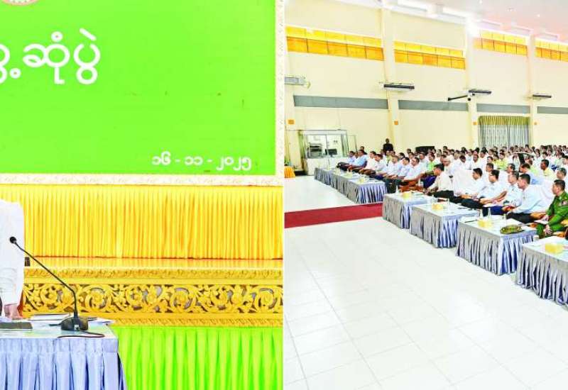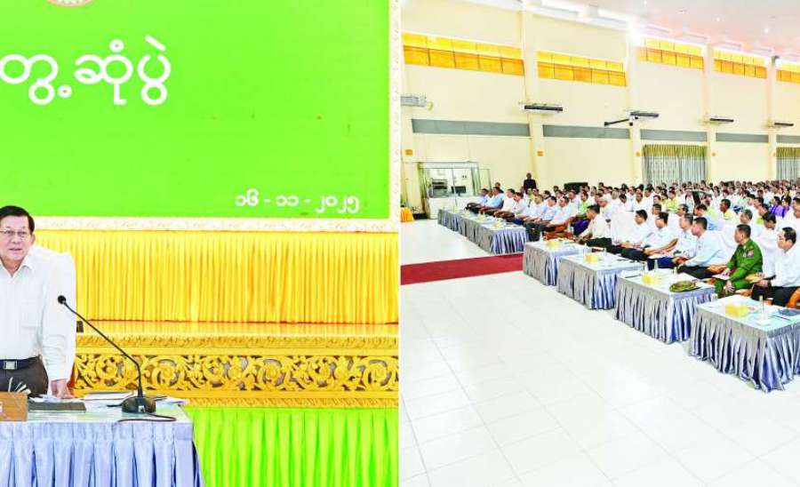 ပြည်ထောင်စုသမ္မတ မြန်မာနိုင်ငံတော်ယာယီသမ္မတ နိုင်ငံတော်လုံခြုံရေးနှင့် အေးချမ်းသာယာရေးကော်မရှင်ဥက္ကဋ္ဌ ဗိုလ်ချုပ်မှူးကြီး မင်းအောင်လှိုင်သည် မွန်ပြည်နယ်ရှိ ပြည်နယ်၊ ခရိုင်၊ မြို့နယ်အဆင့်ဌာနဆိုင်ရာတာဝန်ရှိသူများ၊ မြို့မိ