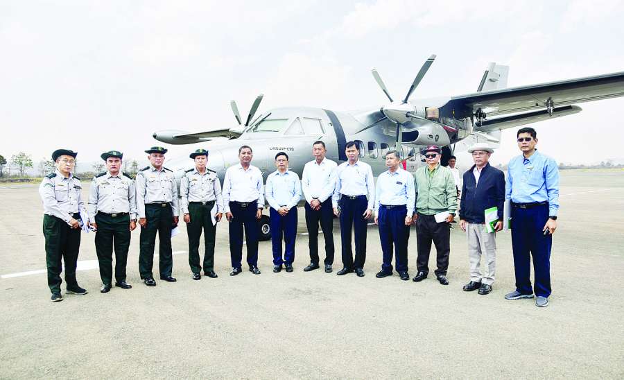 သယံဇာတနှင့် သဘာဝပတ်ဝန်းကျင်ထိန်းသိမ်းရေးဝန်ကြီးဌာန ဒုတိယဝန်ကြီး ဦးမင်းသူ၊ သစ်တောဦးစီးဌာန၊ ကြေးတိုင်နှင့် မြေစာရင်းဦးစီးဌာနနှင့် မြေတိုင်းဦးစီးဌာနတို့မှ ညွှန်ကြားရေးမှူးချုပ်များနှင့် တာဝန်ရှိသူများသည် ညောင်ရွှေမြို့နယ် အင်းလေးကန်ပတ်လည်တွင် မြေအသုံးချမှုပြောင်းလဲမှုများအား ဝေဟင်မှ ကြည့်ရှုစစ်ဆေးရန် ယနေ့နံနက်ပိုင်းတွင် နေပြည်တော်လေဆိပ်မှ ချက်နိုင်ငံထုတ် Let L 410 အမျိုးအစားသယ်ယူပို့ဆောင်ရေးလေယာဉ်ဖြင့် ထွက်ခွာလာကြရာ ဟဲဟိုးလေဆိပ်သို့ ရောက်ရှိကြသည်။