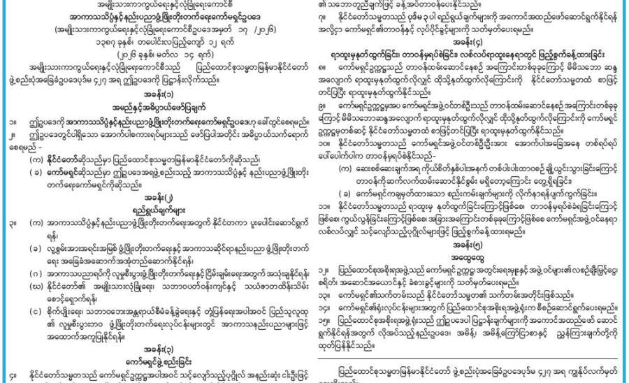 ကျောင်းသားကျောင်းသူများ အဆင်ပြေချောမွေ့စွာ ပညာသင်ကြားနိုင်ရေးနှင့် စာသင်ကျောင်းများ ဥပဓိရုပ်ကောင်းမွန်စေရေးအတွက် တိုင်းဒေသကြီးနှင့် ပြည်နယ်အသီးသီးရှိ အခြေခံပညာကျောင်းများ၌ ကျောင်းပတ်ဝန်းကျင် သန့်ရှင်းသာယာလှပရေးအတွက် နယ်မ