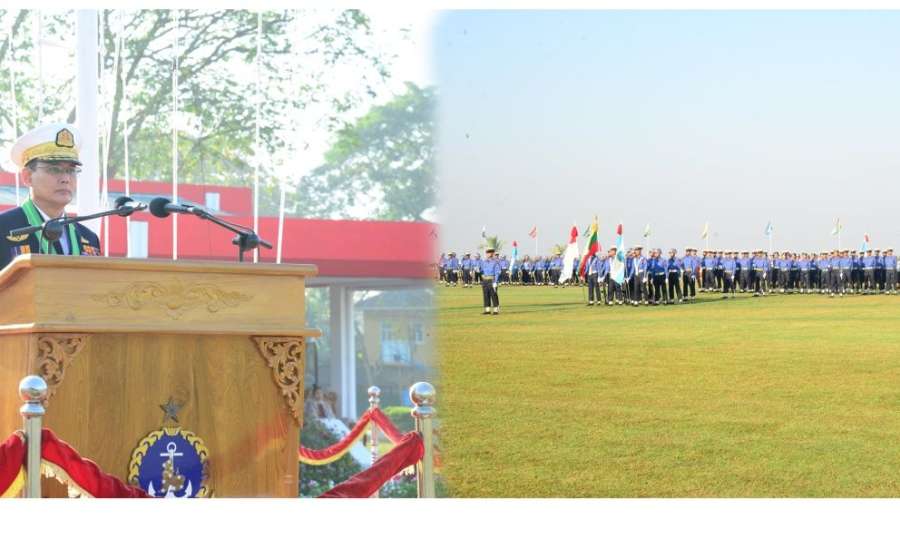 တပ်မတော် (ရေ) အရာရှိငယ် (စီမံခန့်ခွဲရေး) သင်တန်း အမှတ်စဉ် (၈၅)၊ တပ်မတော် (ရေ) အရာရှိငယ် (အင်ဂျင်နီယာ) သင်တန်း အမှတ်စဉ် (၅၉) နှင့် တပ်မတော် (ရေ) အမျိုးသမီးအရာရှိငယ်သင်တန်း အမှတ်စဉ် (၁၀) သင်တန်းဆင်းဂုဏ်ပြုစစ်ရေးပြအခမ်းအနားကို ယနေ့နံနက်ပိုင်းတွင် သန်လျင်တပ်နယ်ရှိ ရေတပ်လေ့ကျင့်ရေးဌာနချုပ် စစ်ရေးပြကွင်း၌ကျင်းပပြုလုပ်ရာ နိုင်ငံတော်လုံခြုံရေးနှင့်အေးချမ်းသာယာရေးကော်မရှင်ဥက္ကဋ္ဌ တပ်မတော်ကာကွယ်ရေးဦးစီးချုပ်ကိုယ်စား ကာကွယ်ရေးဦးစီးချုပ် (ရေ) ဗိုလ်ချုပ်ကြီး ဇေယျကျော်ထင်ထိန်ဝင်း တက်ရောက်မိန့်ခွန်းပြောကြားသည်။