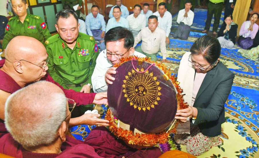 ပြန်ကြားရေးဝန်ကြီးဌာန ပြည်ထောင်စုဝန်ကြီး ဦးမောင်မောင်အုန်းသည် ၂၀၂၅ ခုနှစ် မြန်မာ့ရုပ်ရှင်ထူးချွန်ဆု ချီးမြှင့်ပွဲအခမ်းအနားတွင် ပါဝင်ဆောင်ရွက်နိုင်ရန် ရွေးချယ်ခံထားရသည့် ရွှေကြိုမောင်မယ်များနှင့် ယနေ့နံနက်ပိုင်းတွင် ရန်ကုန်မြို့ဗဟန်းမြို့နယ် ဝင်္ကပါလမ်းရှိ မြန်မာနိုင်ငံရုပ်ရှင်အစည်းအရုံး၌ တွေ့ဆုံသည်။