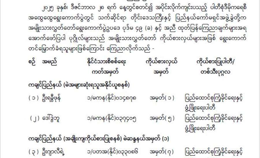 ပြည်သူ့စစ်မှုထမ်းသင်တန်း အမှတ်စဉ် (၂၁) သို့ တက်ရောက်ကြမည့် ယနေ့နံနက်ပိုင်းတွင် ဧရာဝတီတိုင်းဒေသကြီးအတွင်းမှ နိုင်ငံ့သားကောင်းရတနာများအား တိုင်းဒေသကြီးဝန်ကြီးချုပ် ဦးတင်မောင်ဝင်း၊ အနောက်တောင်တိုင်းစစ်ဌာနချုပ်တိုင်မှူး ဗိုလ်ချုပ် စိုးကျော်ထက်နှင့် တာဝန်ရှိသူများက ပုသိမ်တပ်နယ်အားကစားခန်းမ၌ သွားရောက်တွေ့ဆုံသည်။