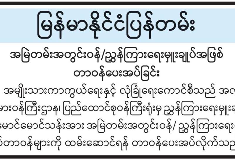 ရန်ကုန်မြို့နှင့် မန္တလေးမြို့အတွက် ရည်ညွှန်းလက်ကားဈေးနှုန်းများနှင့် ပြည်ထောင်စုနယ်မြေ နေပြည်တော်၊ တိုင်းဒေသကြီး/ပြည်နယ် မြို့တော်များအတွက် ရည်ညွှန်းလက်လီဈေးနှုန်းများ
