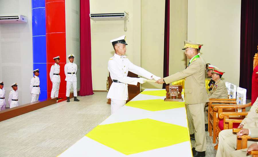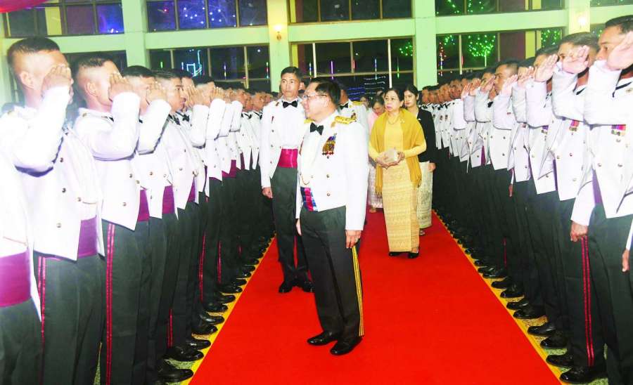 တပ်မတော်နည်းပညာတက္ကသိုလ် ဗိုလ်လောင်းသင်တန်းအမှတ်စဉ် (၂၇) သင်တန်းဆင်းဂုဏ်ပြုညစာစားပွဲအခမ်းအနားကို ယနေ့ညနေပိုင်းတွင် ပြင်ဦးလွင်မြို့၊ တပ်မတော်နည်းပညာတက္ကသိုလ်၊ ဗိုလ်လောင်းစားရိပ်သာ၌ ကျင်းပပြုလုပ်ရာ နိုင်ငံတော်လုံခြုံရေးနှင့် အေးချမ်းသာယာရေးကော်မရှင်ဥက္ကဋ္ဌ တပ်မတော်ကာကွယ်ရေးဦးစီးချုပ် ဗိုလ်ချုပ်မှူးကြီး မင်းအောင်လှိုင် တက်ရောက်ချီးမြှင့်သည်။
