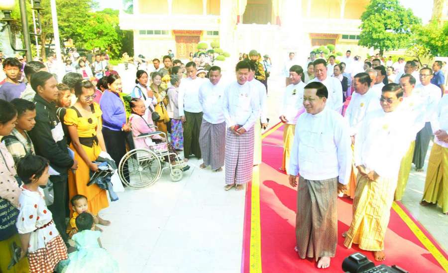 ပြည်ထောင်စုသမ္မတမြန်မာနိုင်ငံတော် ယာယီသမ္မတ နိုင်ငံတော်လုံခြုံရေးနှင့် အေးချမ်းသာယာရေးကော်မရှင်ဥက္ကဋ္ဌ ဗိုလ်ချုပ်မှူးကြီး မင်းအောင်လှိုင်သည် ကောင်စီတွဲဖက်အတွင်းရေးမှူး ဗိုလ်ချုပ်ကြီး ရဲဝင်းဦး၊ ခရီးစဉ်တွင် လိုက်ပါလာသည့် အ