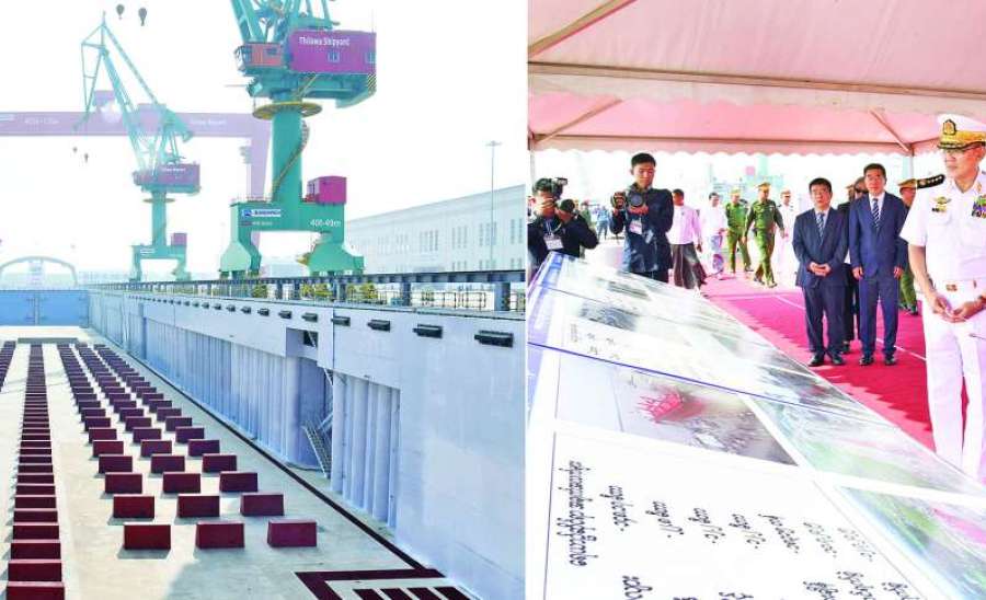 တပ်မတော်(ရေ)မှ ရေတပ်သင်္ဘောကျင်းဌာနချုပ် တန် ၄၀၀၀၀ ရေလုံလွန်းကျင်း ဖွင့်ပွဲအခမ်းအနား၊ ရေငုပ်သင်္ဘောတိုက်ဖျက်ရေးရေယာဉ်များ၏ ဧရာခင်းမင်္ဂလာအခမ်းအနားနှင့် စစ်ရေယာဉ်များ တပ်တော်ဝင်ခြင်းအခမ်းအနားများအား ယနေ့နံနက်ပိုင်းတွင် သန