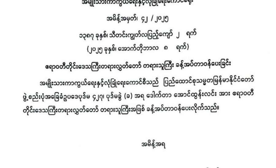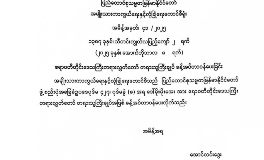 ရန်ကုန်မြို့နှင့် မန္တလေးမြို့အတွက် ရည်ညွှန်းလက်ကားဈေးနှုန်းများနှင့် ပြည်ထောင်စုနယ်မြေ နေပြည်တော်၊ တိုင်းဒေသကြီး/ပြည်နယ် မြို့တော်များအတွက် ရည်ညွှန်းလက်လီဈေးနှုန်းများ