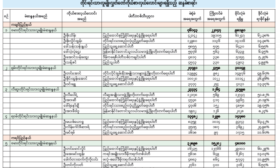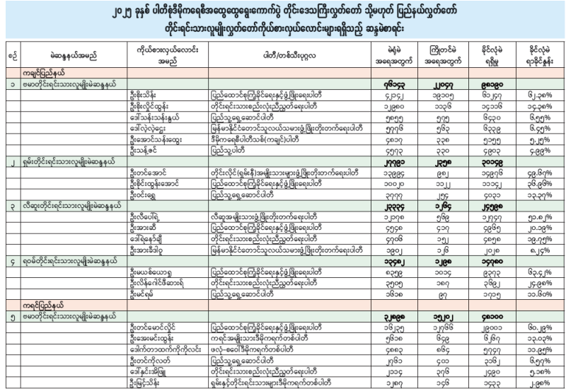 ၂၀၂၅ ခုနှစ် ပါတီစုံဒီမိုကရေစီအထွေထွေရွေးကောက်ပွဲ တိုင်းဒေသကြီးလွှတ်တော် သို့မဟုတ် ပြည်နယ်လွှတ်တော် တိုင်းရင်းသားလူမျိုးလွှတ်တော်ကိုယ်စားလှယ်လောင်းများရရှိသည့် ဆန္ဒမဲစာရင်း