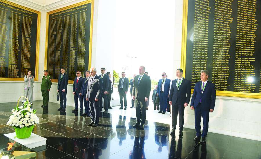 အမျိုးသားလုံခြုံရေးဆိုင်ရာ အကြံပေးပုဂ္ဂိုလ်၊ နိုင်ငံတော်သမ္မတရုံးဝန်ကြီးဌာန (၁) ပြည်ထောင်စုဝန်ကြီး ဦးတင်အောင်စန်း၏ ဖိတ်ကြားချက်အရ မြန်မာနိုင်ငံသို့ရောက်ရှိနေသော ရုရှားဖက်ဒရေးရှင်းနိုင်ငံ လုံခြုံရေးကောင်စီအတွင်းရေးမှူး H.E.Mr. Sergey SHOIGU ဦးဆောင်သော ကိုယ်စားလှယ်အဖွဲ့သည် ယနေ့နံနက်ပိုင်းတွင် သူရဲကောင်းဗိမာန် (နေပြည်တော်) သို့သွားရောက်၍ ဂုဏ်ပြုပန်းခြင်းချပြီး သူရဲကောင်းစစ်သည်များအား အလေးပြုကြသည်။