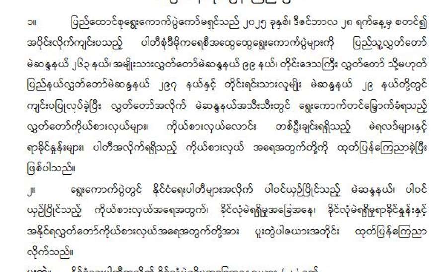 ၂၀၂၅ ခုနှစ် ပါတီစုံဒီမိုကရေစီအထွေထွေရွေးကောက်ပွဲ နိုင်ငံရေးပါတီအလိုက် ခိုင်လုံမဲရရှိမှု အခြေအနေ ထုတ်ပြန်ကြေညာခြင်း
