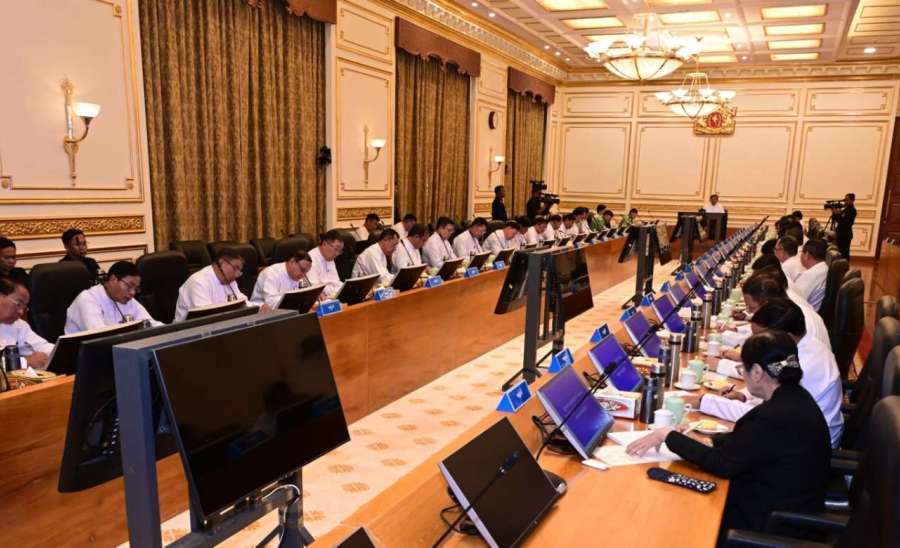 ပြည်ထောင်စုသမ္မတမြန်မာနိုင်ငံတော် ယာယီသမ္မတ နိုင်ငံတော်လုံခြုံရေးနှင့် အေးချမ်းသာယာရေးကော်မရှင်ဥက္ကဋ္ဌ ဗိုလ်ချုပ်မှူးကြီး မင်းအောင်လှိုင်သည် ရွေးကောက်ပွဲကော်မရှင်ဥက္ကဋ္ဌ၊ နေပြည်တော်ကောင်စီဥက္ကဋ္ဌ၊ တိုင်းဒေသကြီးနှင့် ပြည်နယ်ဝန်ကြီးချုပ်များအား ယနေ့မွန်းလွဲပိုင်းတွင် အမျိုးသားကာကွယ်ရေးနှင့် လုံခြုံရေးကောင်စီရုံးအစည်းအဝေးခန်းမ၌ တွေ့ဆုံအမှာစကားပြောကြားသည်။