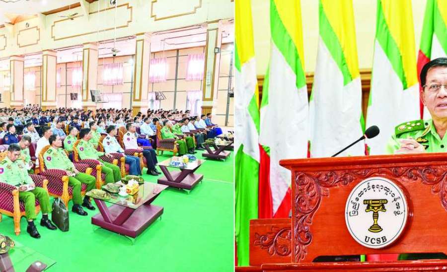 ပြည်ထောင်စုသမ္မတမြန်မာနိုင်ငံတော် ယာယီသမ္မတ နိုင်ငံတော်လုံခြုံရေးနှင့်အေးချမ်းသာယာရေးကော်မရှင်ဥက္ကဋ္ဌ ဗိုလ်ချုပ်မှူးကြီး မင်းအောင်လှိုင်သည် မန္တလေးတိုင်းဒေသကြီး ပြင်ဦးလွင်မြို့နယ် ဇီးပင်ကြီးရှိ နိုင်ငံ့ဝန်ထမ်းတက္ကသိုလ် (အထက်မြန်မာပြည်)၊ ရဲအရာရှိလေ့ကျင့် ရေးကျောင်း (ဇီးပင်ကြီး)နှင့် ဗဟိုမီးသတ်သင်တန်းကျောင်း (ပြင်ဦးလွင်) တို့မှ နည်းပြအရာရှိများနှင့် သင်တန်းသား သင်တန်းသူများအား ယနေ့မွန်းလွဲပိုင်းတွင် နိုင်ငံ့ဝန်ထမ်းတက္ကသိုလ် (အထက် မြန်မာပြည်)ရှိ ရတနာခန်းမ၌ တွေ့ဆုံအမှာစကားပြောကြားသည်။