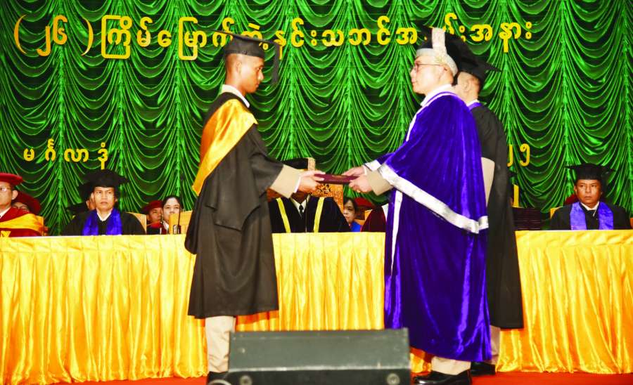 တပ်မတော်ဆေးတက္ကသိုလ်၏ (၂၆) ကြိမ်မြောက် ဘွဲ့နှင်းသဘင်အခမ်းအနားကို ယနေ့ မွန်းလွဲပိုင်းတွင် ရန်ကုန်တိုင်းဒေသကြီး မင်္ဂလာဒုံမြို့နယ်ရှိ တပ်မတော်ဆေးတက္ကသိုလ် ဘွဲ့နှင်းသဘင်ခန်းမ၌ ကျင်းပရာ တပ်မတော်ဆေးတက္ကသိုလ်ကျောင်းအုပ်ကြီး ဗိ