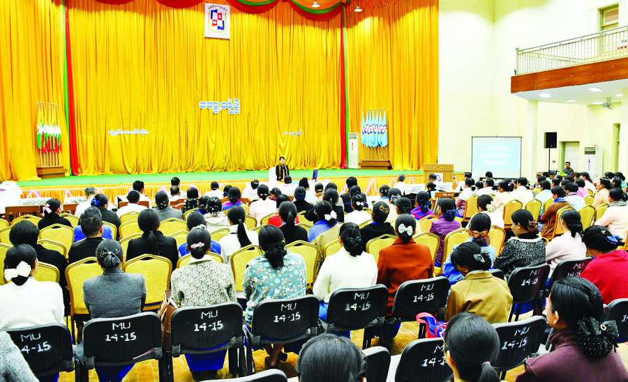 ပညာရေးဝန်ကြီးဌာန ပြည်ထောင်စုဝန်ကြီး ဒေါက်တာချောချောစိန်သည် တာဝန်ရှိသူများနှင့်အတူ ယမန်နေ့နံနက်ပိုင်းက မြစ်ကြီးနားတက္ကသိုလ်ဘွဲ့နှင်းသဘင်ခန်းမ၌ မြစ်ကြီးနားတက္ကသိုလ်နှင့် မိုးညှင်းတက္ကသိုလ်တို့မှ ပါမောက္ခချုပ်များ၊ ဒုတိယပါမ