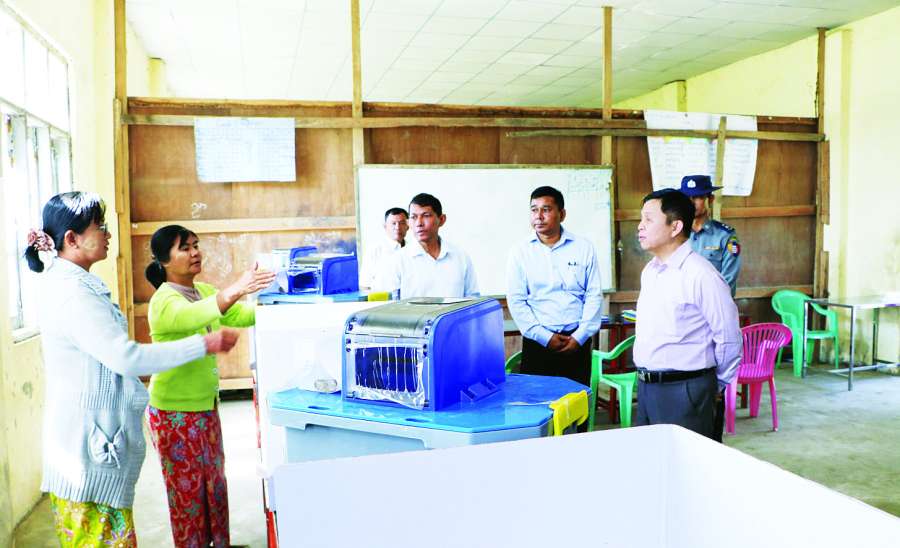ဝါးခယ်မမြို့နယ် ကျုံမငေးမြို့၌ အထွေထွေရွေးကောက်ပွဲ အပိုင်း (၂) ကျင်းပနိုင်ရေး မဲရုံများပြင်ဆင်ထားရှိမှု လှည့်လည်စစ်ဆေး
