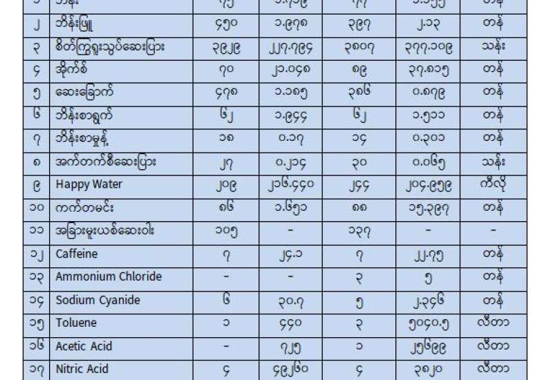 ရန်ကုန်မြို့နှင့် မန္တလေးမြို့အတွက် ရည်ညွှန်းလက်ကားဈေးနှုန်းများနှင့် ပြည်ထောင်စုနယ်မြေ နေပြည်တော်၊ တိုင်းဒေသကြီး/ ပြည်နယ် မြို့တော်များအတွက် ရည်ညွှန်းလက်လီဈေးနှုန်းများ