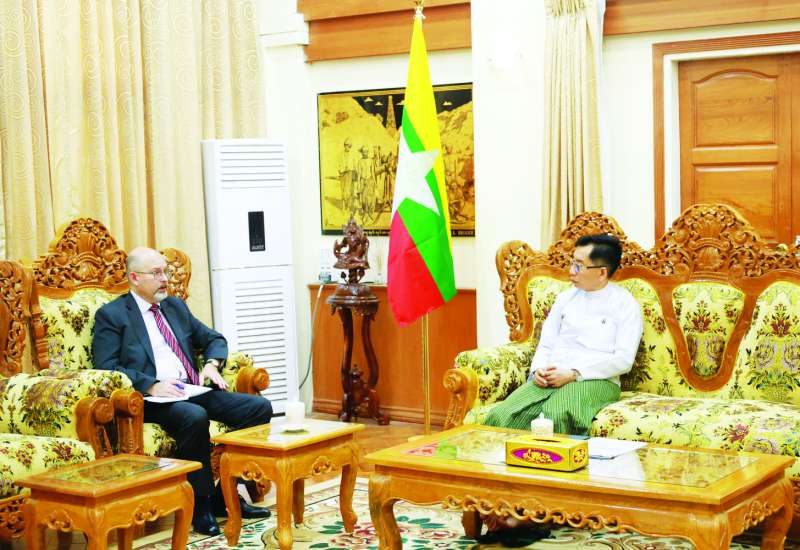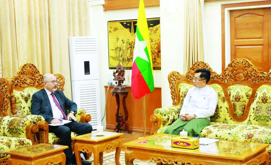 နေပြည်တော်ပြည်ထောင်စုနယ်မြေအတွင်းရှိ ဟိုတယ်နှင့်ခရီးသွားလုပ်ငန်းများ စနစ်တကျ ဖွံ့ဖြိုးတိုးတက်လာစေရေး၊ ဟိုတယ်ဆိုင်ရာ ဝန်ဆောင်မှုအဆင့်အတန်းများ မြင့်မားလာစေရေးနှင့် နေပြည်တော်ရှိ ခရီးစဉ်ဒေသများသို့ ပြည်တွင်းပြည်ပခရီးသွားဧည့်သည်များ ပိုမိုတိုးတက်ဝင်ရောက်လာစေရေးတို့အတွက် ရည်ရွယ်၍ ဟိုတယ်၊ ခရီးသွားလာရေးနှင့်ယဉ်ကျေးမှုဝန်ကြီးဌာန ပြည်ထောင်စုဝန်ကြီး ဦးမောင်မြင့်သည် ယနေ့မွန်းလွဲပိုင်းတွင် ဝန်ကြီးဌာန၏ ကျောက်စိမ်းခန်းမ၌ နေပြည်တော်ပြည်ထောင်စုနယ်မြေအတွင်းရှိ ဟိုတယ်နှင့်ခရီးသွားဆိုင်ရာအသင်းအဖွဲ့များ၊ လုပ်ငန်းရှင်များ၊ ဟိုတယ်များမှ တာဝန်ရှိသူများအား တွေ့ဆုံသည်။