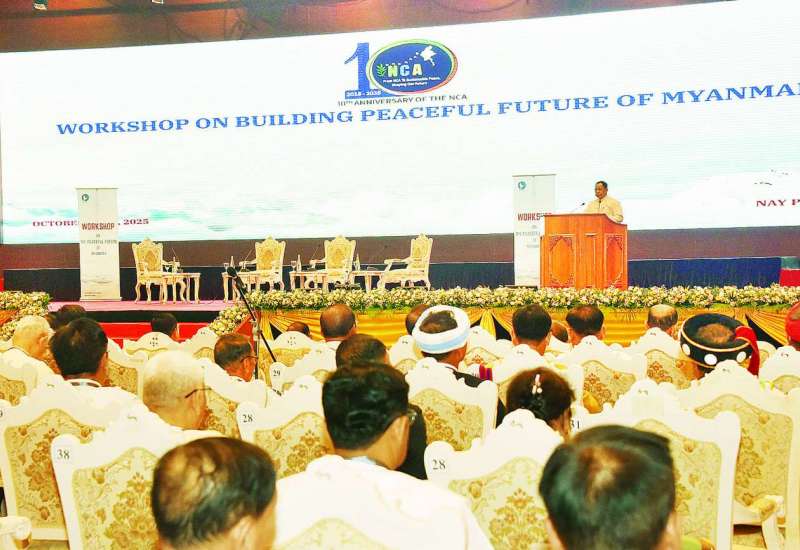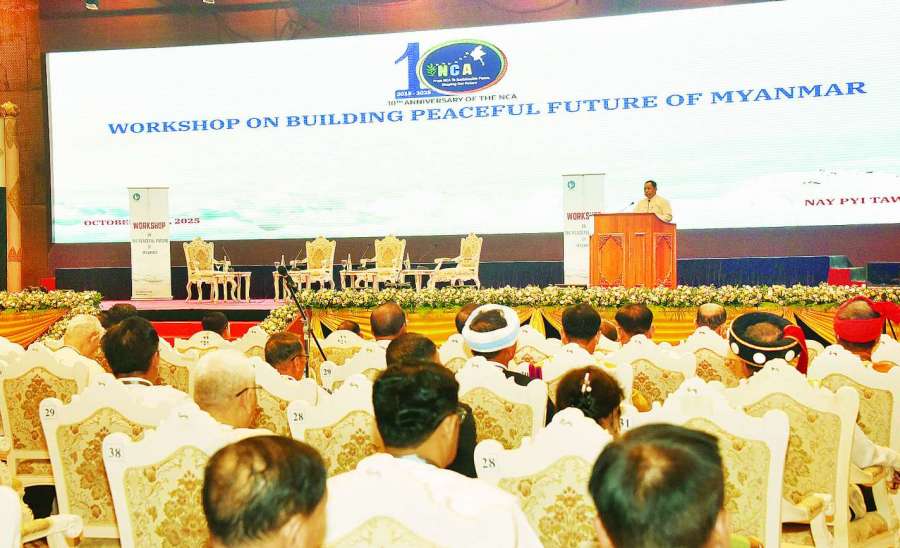 တစ်နိုင်ငံလုံး ပစ်ခတ်တိုက်ခိုက်မှုရပ်စဲရေး သဘောတူစာချုပ် (NCA) (၁၀)နှစ်ပြည့် နှစ်ပတ်လည်နေ့အထိမ်းအမှတ် “ငြိမ်းချမ်းသော မြန်မာ့အနာဂတ် တည်ဆောက်ခြင်း” အလုပ်ရုံဆွေးနွေးပွဲကို ယနေ့ မွန်းလွဲပိုင်းတွင် နေပြည်တော်ရှိ မြန်မာအပြည်ပ