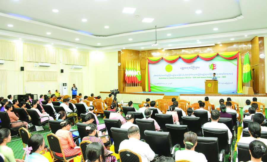 ပညာရေးဝန်ကြီးဌာန၏ နှစ်အလိုက်စွမ်းဆောင်ရည် ပြန်လည်သုံးသပ်ခြင်းနှင့် နှစ်အလိုက် ဘဏ္ဍာငွေပြန်လည်သုံးသပ်ခြင်း အလုပ်ရုံဆွေးနွေးပွဲကို ယမန်နေ့က နေပြည်တော်ရှိ ပညာရေးဝန်ကြီးဌာန အစည်းအဝေးခန်းမ၌ ကျင်းပရာ ပြည်ထောင်စုဝန်ကြီး ဒေါက်တာ