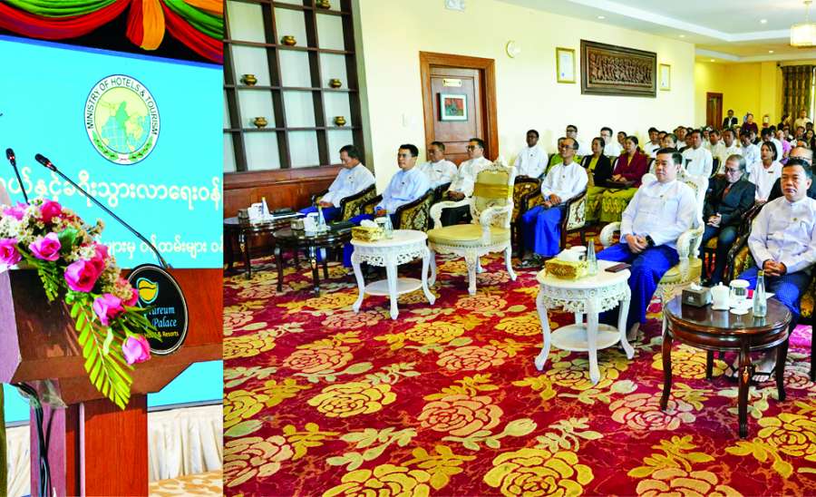 ပြည်ထောင်စုနယ်မြေ နေပြည်တော်အတွင်းရှိ ဟိုတယ်များမှ မန်နေဂျာ/ ကြီးကြပ်ရေးမှူးအဆင့်ရှိ ဝန်ထမ်းများအတွက် ခေါင်းဆောင်မှုနှင့် ဝန်ဆောင်မှုစွမ်းရည်မြှင့်တင်ရေးသင်တန်းဖွင့်ပွဲကို ယနေ့နံနက်ပိုင်းတွင် နေပြည်တော် Aureum Palace ဟိုတယ်၌ ကျင်းပသည်။