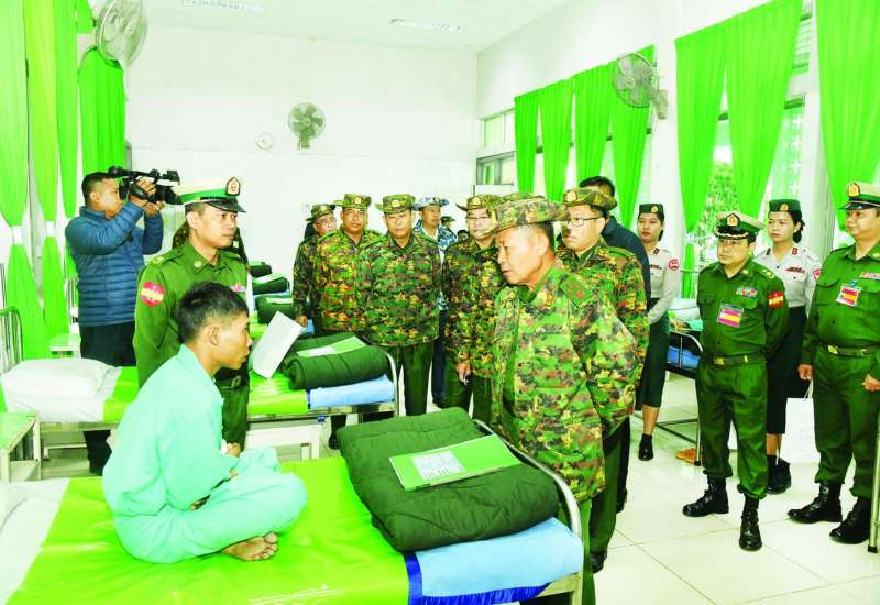 နိုင်ငံတော်လုံခြုံရေးနှင့် အေးချမ်းသာယာရေး ကော်မရှင် ဒုတိယဥက္ကဋ္ဌ ဒုတိယတပ်မတော်ကာကွယ် ရေးဦးစီးချုပ် ကာကွယ်ရေးဦးစီးချုပ်(ကြည်း) ဒုတိယဗိုလ်ချုပ်မှူးကြီး စိုးဝင်းသည် ကာကွယ်ရေးဦးစီးချုပ်ရုံးမှ တပ်မတော်အရာရှိကြီးများ၊ မြောက်ပိုင်းတိုင်း စစ်ဌာနချုပ်တိုင်းမှူးနှင့် တာဝန်ရှိသူများလိုက်ပါ၍ ယနေ့နံနက်ပိုင်းတွင် ကချင်ပြည်နယ် မြစ်ကြီးနားမြို့ရှိ နယ်မြေခံတပ်မတော်ဆေးရုံ၌ ဆေးရုံတက်ရောက်ဆေးကုသမှုခံယူလျက်ရှိသည့် အရာရှိ၊ စစ်သည်များ၊ မြန်မာနိုင်ငံရဲတပ်ဖွဲ့ဝင်နှင့် ပြည်သူစစ်(ဌာနေ) တပ်ဖွဲ့ဝင်များကို သွားရောက်ကြည့်ရှု အားပေးစကားပြောကြားသည်။