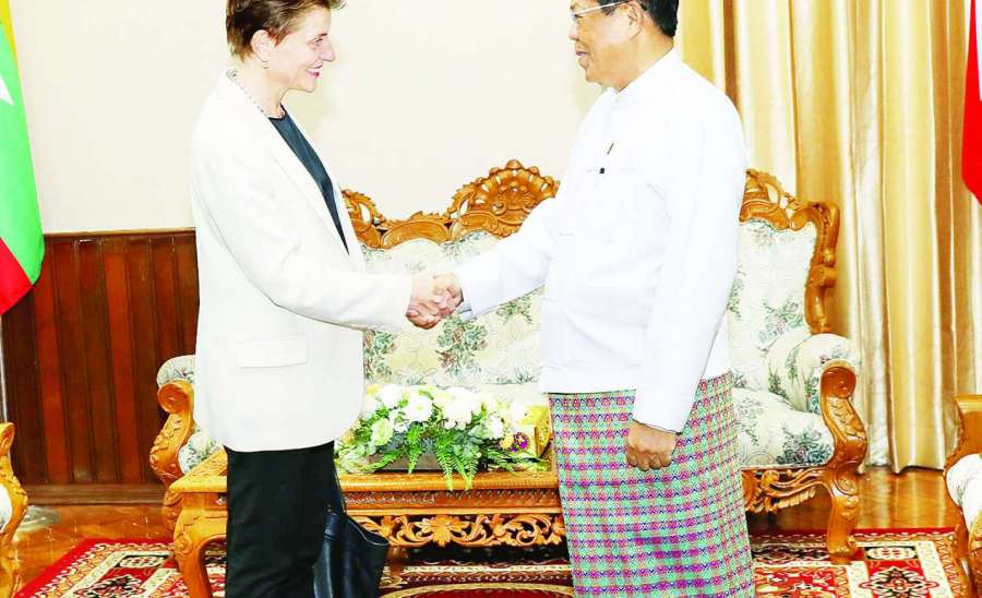 နိုင်ငံခြားရေးဝန်ကြီးဌာန ပြည်ထောင်စုဝန်ကြီးဦးသန်းဆွေသည် မြန်မာနိုင်ငံဆိုင်ရာ ကုလသမဂ္ဂယာယီဌာနေ ညှိနှိုင်းရေးမှူးနှင့် လူသားချင်းစာနာထောက်ထားမှုဆိုင်ရာ ယာယီညှိနှိုင်းရေးမှူးဖြစ်သူ Ms.Gwyn Lewis အား ယနေ့နံနက် ၁၀ နာရီတွင် နေပြည်တော်ရှိ နိုင်ငံခြားရေးဝန်ကြီးဌာန၌ လက်ခံတွေ့ဆုံသည်။