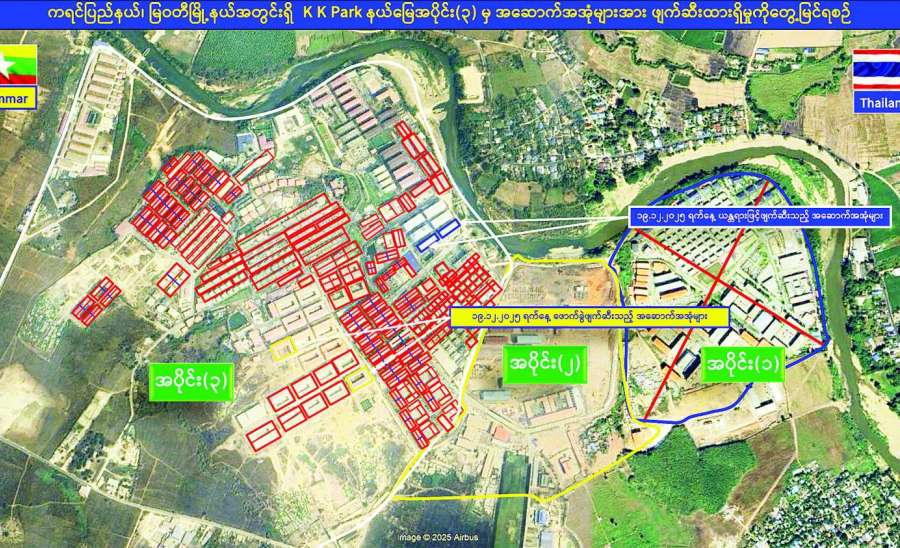 KK Park နယ်မြေအတွင်းရှိ အွန်လိုင်းလိမ်လည်လောင်းကစားမှုကျူးလွန်ရာတွင် အသုံးပြုသည့် အဆောက်အအုံ ၄၈၂ လုံး စနစ်တကျ ဖြိုချဖျက်ဆီးပြီးဖြစ်၊ အွန်လိုင်းလိမ်လည်လောင်းကစားမှုကျူးလွန်ရာတွင် အသုံးပြုသည့်ပစ္စည်းများအား မီးရှို့ဖျက်ဆီး