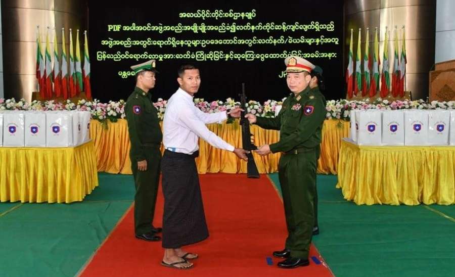 နိုင်ငံတော်အစိုးရသည် PDF အပါအဝင် အဖွဲ့အစည်းအမျိုးမျိုးအမည်ခံ၍ လက်နက်ကိုင်ဆန့်ကျင်လျက်ရှိသည့် အဖွဲ့အစည်းများအတွင်း ရောက်ရှိနေသူများအား ဥပဒေဘောင်အတွင်းသို့ ပြန်လည်ဝင်ရောက်ရန်ဖိတ်ခေါ်၍ ဥပဒေဘောင်အတွင်းသို့ ပြန်လည်ဝင်ရောက်လာကြသူများကိုလည်း လိုအပ်သည့် ကူညီပံ့ပိုးမှုများ ဆောင်ရွက်ပေးလျက်ရှိသည်။