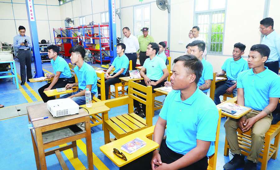 အလုပ်သမားဝန်ကြီးဌာန ပြည်ထောင်စုဝန်ကြီး ဦးအောင်ကျော်ဟိုးသည် ယနေ့နံနက်ပိုင်းတွင် ရန်ကုန်တိုင်းဒေသကြီးရှိ အလုပ်သမားရေးရာ တာဝန်ရှိသူများနှင့်အတူ ရန်ကင်းမြို့နယ် ကျွမ်းကျင်မှုလေ့ကျင့်ရေးသင်တန်းကျောင်း(ရန်ကင်း)၌ ရန်ကုန်တိုင်းဒေသကြီး ကလေးအလုပ်သမားပပျောက်ရေးကော်မတီ၏ ဦးဆောင်ကြီးကြပ်မှုဖြင့်ဖွင့်လှစ်သည့် မော်တော်ယာဉ်စက်ပြင်သင်တန်းအမှတ်စဉ် (၄/၂၀၂၅) ဖွင့်လှစ် ပို့ချနေမှုကို ကြည့်ရှုအားပေးသည်။