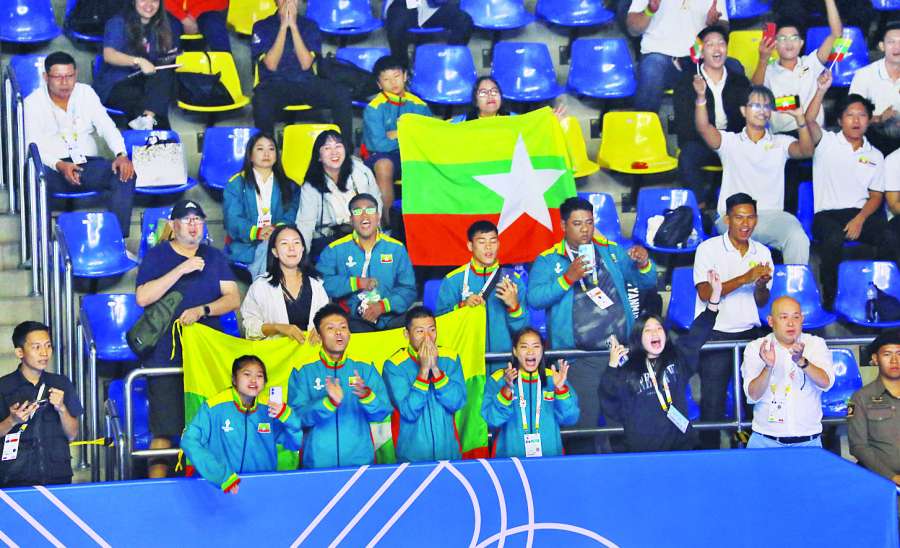 (၃၃) ကြိမ်မြောက် အရှေ့တောင် အာရှအားကစားပြိုင်ပွဲကို ထိုင်း နိုင်ငံ ဘန်ကောက်နှင့် ချွန်ဘူရီမြို့ တို့တွင် ကျင်းပပြုလုပ်လျက်ရှိပြီး မြန်မာအသင်းအနေဖြင့် စက်ဘီး၊ မြားပစ်၊ သေနတ်ပစ်၊ ဘိုးလင်း၊ ဘိလိယက်နှင့် စနူကာ၊ ကဘာဒီ၊ ပိုက်ကျော်ခြင်း၊ ဖူဆယ်၊ မွေ၊ လက်ဝှေ့၊ ကစ်ဘောက်ဆင်၊ ပြေးခုန်ပစ်၊ E-sports ၊ စစ်တုရင်၊ စားပွဲတင်တင်းနစ်၊ အပြည်ပြည် ဆိုင်ရာ လှေ၊ ရွက်လှေနှင့် အလေးမပြိုင်ပွဲများ၌ ဝင်ရောက်ယှဉ်ပြိုင်ခဲ့ရာ ယနေ့နံနက်ပိုင်းတွင် မြန်မာနိုင်ငံ အိုလံပစ်ကော်မတီအထွေထွေအတွင်းရေးမှူးအား ကစားနှင့်လူငယ်ရေးရာဝန်ကြီးဌာန ဒုတိယဝန်ကြီး ဦးထိန်လင်း၊ ပို့ဆောင်ရေးနှင့်ဆက်သွယ်ရေးဝန်ကြီးဌာန ဒုတိယဝန်ကြီး ဦးအောင်ကျော်ထွန်း၊ မြန်မာ အားကစားအဖွဲ့ခေါင်းဆောင်နှင့် အုပ်ချုပ်မှုအဖွဲ့ဝင်များ၊ မြန်မာ အားကစားအဖွဲ့ချုပ်ဥက္ကဋ္ဌများနှင့် တာဝန်ရှိသူများ တက်ရောက်ကြည့်ရှုအားပေးသည်။