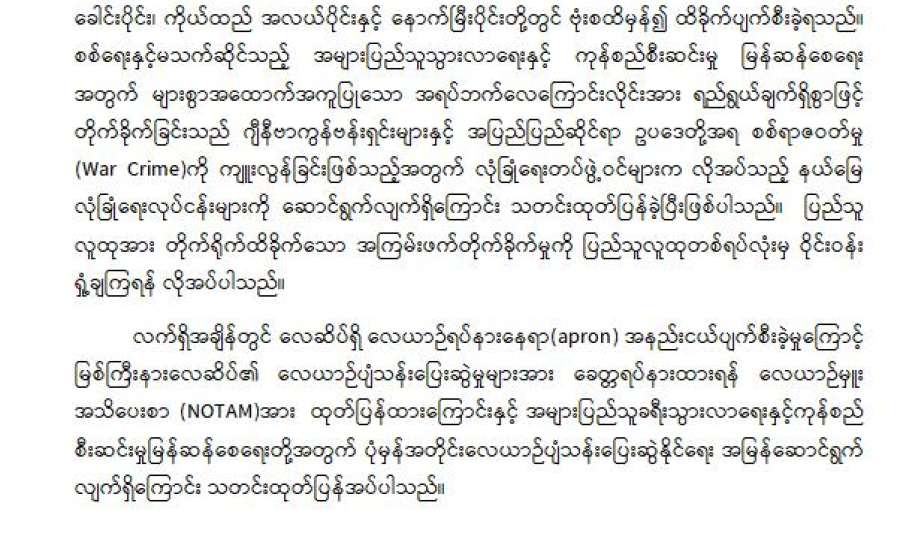 မြစ်ကြီးနားလေဆိပ်တွင် ခရီးသည်တင် လေယာဉ်တစ်စင်း အကြမ်းဖက်တိုက်ခိုက်ခံရမှုနှင့် ပတ်သက်၍ နောက်ဆက်တွဲ သတင်းထုတ်ပြန်ချက်