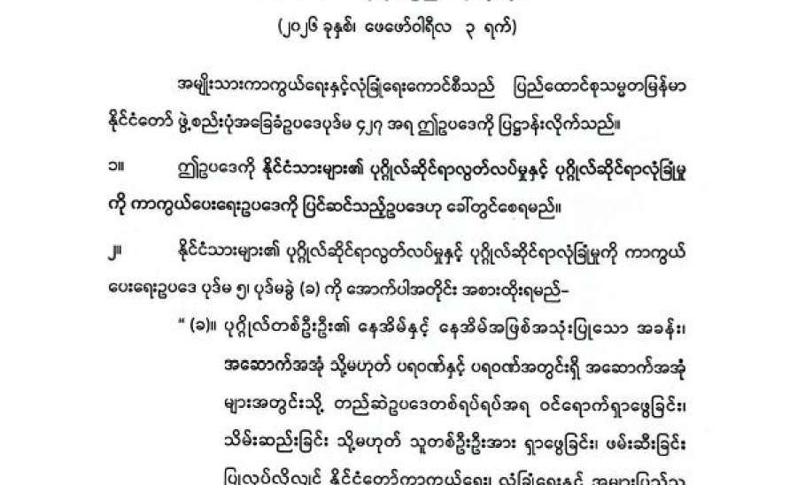 နိုင်ငံသားများ၏ ပုဂ္ဂိုလ်ဆိုင်ရာလွတ်လပ်မှုနှင့် ပုဂ္ဂိုလ်ဆိုင်ရာလုံခြုံမှုကို ကွယ်ပေးရေးဥပဒေကို ပြင်ဆင်သည့်ဥပဒေ