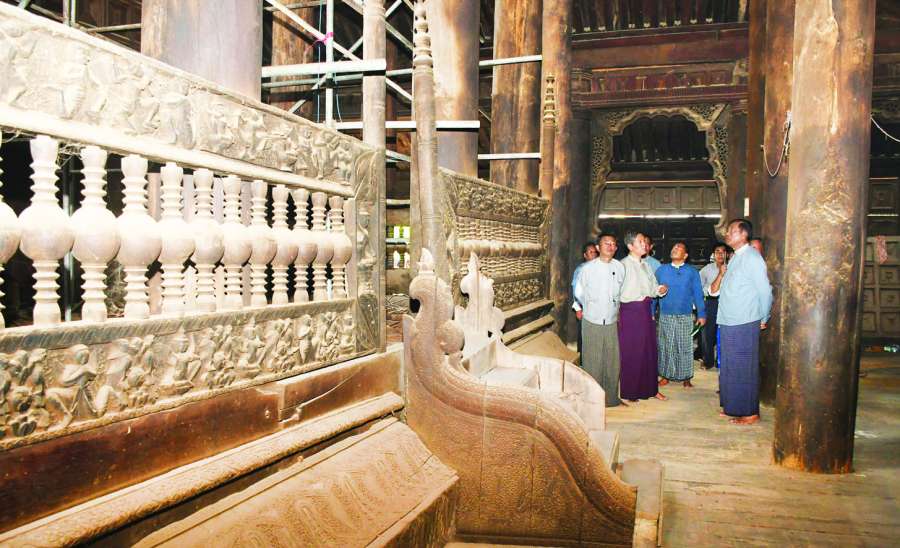 ဟိုတယ်၊ ခရီးသွားလာရေးနှင့် ယဉ်ကျေးမှုဝန်ကြီးဌာန ပြည်ထောင်စုဝန်ကြီး ဦးမောင်မြင့်သည် တာဝန်ရှိသူများနှင့်အတူ ယနေ့နံနက်ပိုင်းက ငလျင်ကြောင့် မန္တလေးဒေသရှိ အရိပ်မထွက်ဘုရား၊ ဘုရားနီဘုရား၊ မဟာမင်းထင် သစ်သားဘုန်းကြီးကျောင်း၊ မဟာစန္ဒာမုနိဘုရားနှင့် မဟာမုနိဘုရားကြီးတို့ ထိခိုက်ပျက်စီးမှုနှင့် ပြုပြင်နေမှုကို ကွင်းဆင်းကြည့်ရှုစစ်ဆေးသည်။