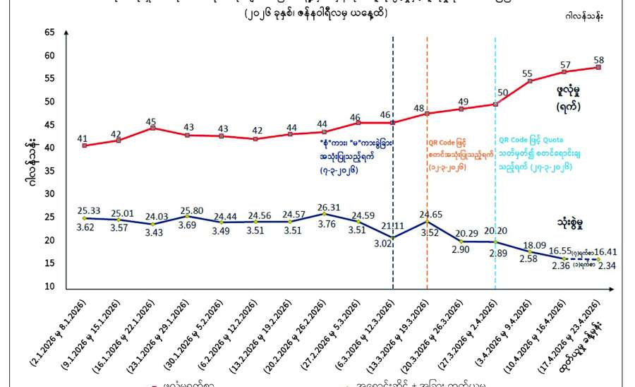ရန်ကုန်မြို့နှင့် မန္တလေးမြို့အတွက် ရည်ညွှန်းလက်ကားဈေးနှုန်းများနှင့် ပြည်ထောင်စုနယ်မြေ နေပြည်တော်၊ တိုင်းဒေသကြီး/ပြည်နယ် မြို့တော်များအတွက် ရည်ညွှန်းလက်လီဈေးနှုန်းများ