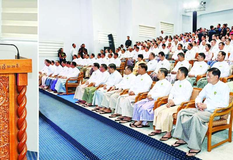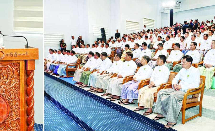 မြန်မာနိုင်ငံဝိဇ္ဇာနှင့်သိပ္ပံပညာရှင်အဖွဲ့၏ (၂၅)ကြိမ်မြောက် ငွေရတုသုတေသနညီလာခံနှင့် သိပ္ပံပွဲတော် (၂၀၂၆) ဖွင့်ပွဲအခမ်းအနားကို ယနေ့မွန်းလွဲပိုင်းတွင် ရန်ကုန်တက္ကသိုလ် သုတေသနနှင့် ဆန်းသစ်တီထွင်မှုစင်တာ၌ ကျင်းပပြုလုပ်ရာ ပြည်ထောင်စု သမ္မတမြန်မာနိုင်ငံတော် ယာယီသမ္မတ နိုင်ငံတော်လုံခြုံရေးနှင့် အေးချမ်းသာယာရေးကော်မရှင်ဥက္ကဋ္ဌ ဗိုလ်ချုပ်မှူးကြီးမင်းအောင်လှိုင် တက်ရောက်အမှာစကား ပြောကြားသည်။