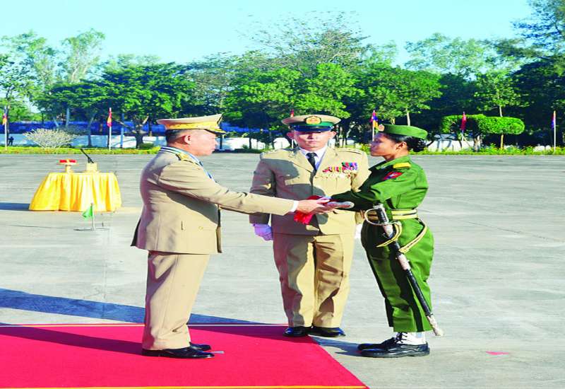 တပ်မတော်၏ အမျိုးသမီးစစ်မှုထမ်းများ၏ အခန်းကဏ္ဍကို အားသစ်လောင်းမည့် ဘွဲ့ရအမျိုးသမီးဗိုလ်လောင်းသင်တန်း အမှတ်စဉ်(၁၂) သင်တန်းဆင်းဂုဏ်ပြုစစ်ရေးပြအခမ်းအနားကို ယနေ့နံနက်ပိုင်းတွင် ရန်ကုန်မြို့ရှိ တပ်မတော်(ကြည်း) ဗိုလ်သင်တန်းကျောင်း(မှော်ဘီ)စစ်ရေးပြကွင်း၌ ကျင်းပပြုလုပ်ရာ နိုင်ငံတော်လုံခြုံရေးနှင့် အေးချမ်းသာယာရေးကော်မရှင်ဥက္ကဋ္ဌ တပ်မတော်ကာကွယ်ရေးဦးစီးချုပ် ဗိုလ်ချုပ်မှူးကြီးသတိုးမဟာသရေစည်သူ သတိုးသီရိသုဓမ္မ မင်းအောင်လှိုင် တက်ရောက်မိန့်ခွန်း ပြောကြားသည်။