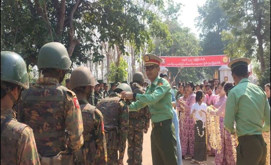 နိုင်ငံတော်တည်ငြိမ်ရေးနှင့် နယ်မြေအေးချမ်းသာယာရေးအတွက် မိုးဗြဲဒေသတစ်ဝိုက် နယ်မြေလုံခြုံရေးတာဝန်များကို ထမ်းဆောင်၍ ပြန်လည်ရောက်ရှိလာသော ရှေ့တန်းပြန် နိုင်ငံ့သားကောင်းတပ်မတော်သားများအား ဂုဏ်ပြုကြိုဆိုခြင်းကို ရှမ်းပြည်နယ်(