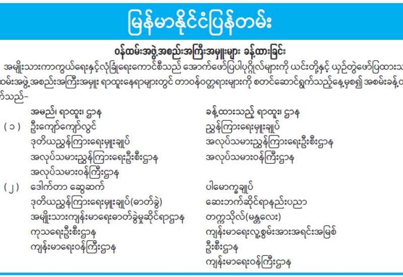 မြန်မာနိုင်ငံတော်ဗဟိုဘဏ် ဒုတိယဥက္ကဋ္ဌ ခန့်အပ်တာဝန်ပေးခြင်း