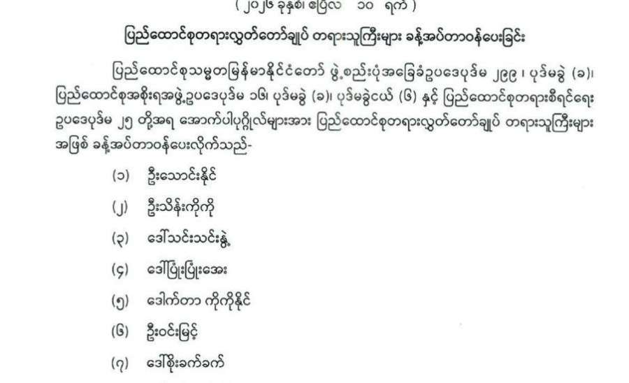 ပြည်ထောင်စုရာထူးဝန်အဖွဲ့ဥက္ကဋ္ဌ ခန့်အပ်တာဝန်ပေးခြင်း