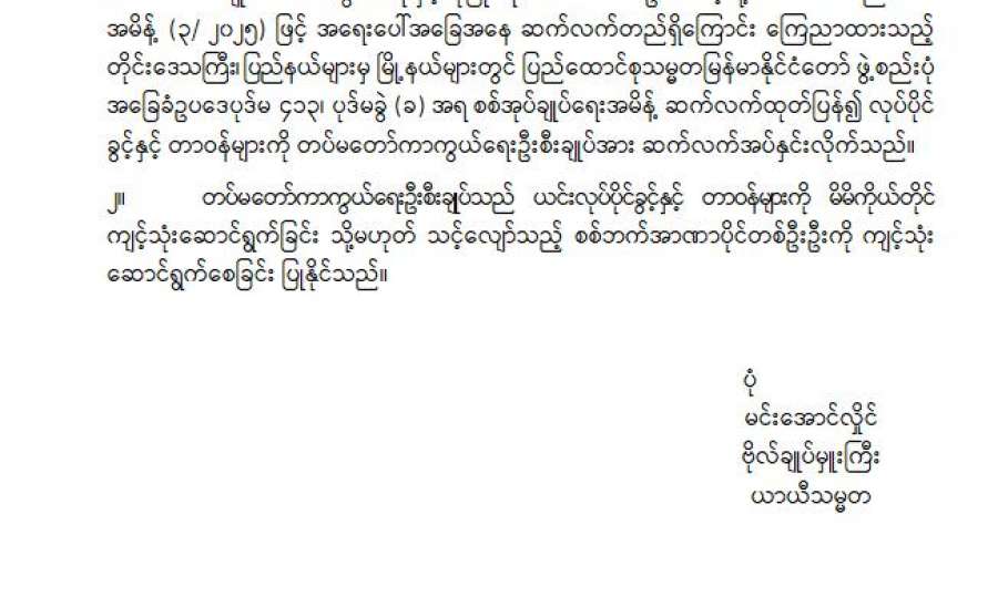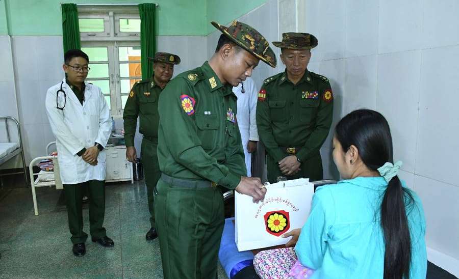 ရှမ်းပြည်နယ်(တောင်ပိုင်း) အောင်ပန်းမြို့နှင့်ခိုလမ်မြို့တို့ရှိ တပ်မတော်ဆေးရုံများ၊ ရှမ်းပြည်နယ်(အရှေ့ပိုင်း) ကျိုင်းတုံမြို့ရှိတပ်မတော်ဆေးရုံ၊ တနင်္သာရီတိုင်းဒေသကြီး မြိတ်မြို့ရှိ တပ်မတော်ဆေးရုံ၊ ရန်ကုန်တိုင်းဒေသကြီး မင်္ဂလာဒုံမြို့နယ်ရှိ တပ်မတော်အရိုးရောဂါ အထူးကုဆေးရုံကြီး(ခုတင်-၅၀၀)နှင့် တပ်မတော်ဆေးရုံကြီး(ခုတင်-၁၀၀၀)၊ မန္တလေးတိုင်းဒေသကြီး၊ မန္တလေးမြို့ နန်းမြို့တွင်းရှိ တပ်မတော်ဆေးရုံနှင့် ပဲခူးတိုင်းဒေသကြီး တောင်ငူမြို့ရှိ တပ်မတော်ဆေးရုံတို့၌ တက်ရောက်ဆေးကုသမှုခံယူလျက်ရှိသော အရာရှိ၊ စစ်သည်၊ မိသားစုဝင်များ၊ ပြည်သူ့စစ်မှုထမ်းများ၊ စစ်မှုထမ်းဟောင်းအဖွဲ့ဝင်များ၊ မြန်မာနိုင်ငံရဲတပ်ဖွဲ့ဝင်များ၊ ပြည်သူ့စစ်(ဌာနေ)တပ်ဖွဲ့ဝင်များနှင့် ဒေသခံပြည်သူများအား ယနေ့တွင် သက်ဆိုင်ရာ တိုင်းစစ်ဌာနချုပ်များမှ တိုင်းမှူးများနှင့်တာဝန်ရှိသူများက သွားရောက်ကြည့်ရှု၍ တစ်ဦးချင်း၏ ရောဂါဖြစ်ပွားမှု၊ ဆေးဝါးကုသပေးထားမှုနှင့် ကျန်းမာရေးတိုးတက်ကောင်းမွန်မှုအခြေအနေများကို မေးမြန်းအားပေးစကားပြောကြားပြီး အာဟာရဖြည့်စားသောက်ဖွယ်ရာများနှင့် ချီးမြှင့်ငွေများပေး အပ်ကြသည်။