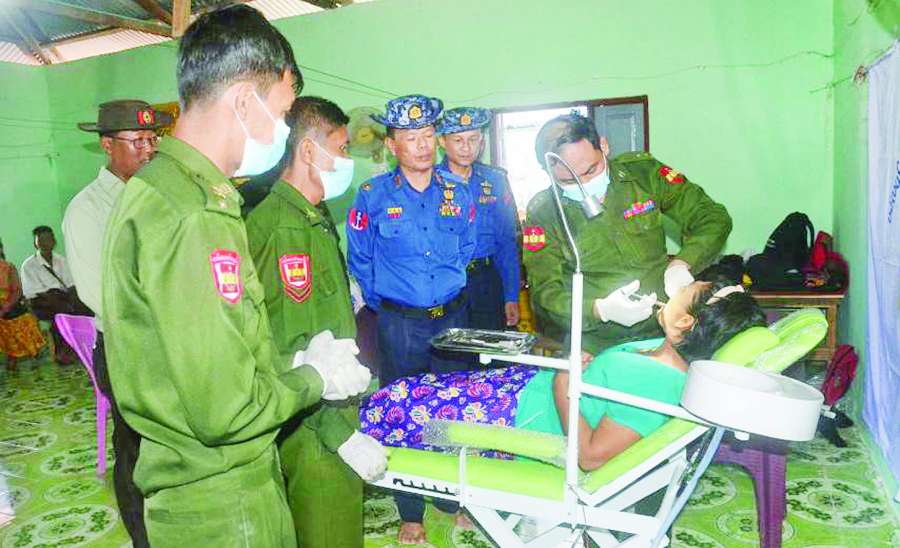 ရန်ကုန်တိုင်းဒေသကြီး၊ ကိုကိုးကျွန်းမြို့နယ်နှင့် ဧရာဝတီတိုင်းဒေသကြီး၊ ဟိုင်းကြီးကျွန်းမြို့နယ်အတွင်းရှိ ကျေးရွာများနှင့် ပတ်ဝန်းကျင်ကျေးရွာများမှ ဒေသခံပြည်သူများအား ကျန်းမာရေးစောင့်ရှောက်မှုလုပ်ငန်းများ ဆောင်ရွက်ပေးရန်အတွက် တပ်မတော်ပင်လယ်သွားဆေးရုံရေယာဉ် (သံလွင်) ဖြင့် ရောက်ရှိနေသည့် တပ်မတော်မှ ပါရဂူများ၊ ဆေးမှူးများနှင့် သူနာပြုများပါဝင်သော တပ်မတော်နယ်လှည့်အထူးကုဆေးအဖွဲ့သည် ယနေ့တွင် ငပုတောမြို့နယ်၊ ချောင်းဝကျေးရွာ၊ ကျောင်းသစ်ကျောင်း ဘုန်းကြီးကျောင်း၌ အခြေပြု၍ ချောင်းဝကျေးရွာနှင့် ပတ်ဝန်းကျင်ကျေးရွာများမှ ဒေသခံပြည်သူ ၅၀၁ ဦးအား ကျန်းမာရေးစောင့်ရှောက်မှုလုပ်ငန်းများ ဆက်လက်ဆောင်ရွက်ပေးသည်။