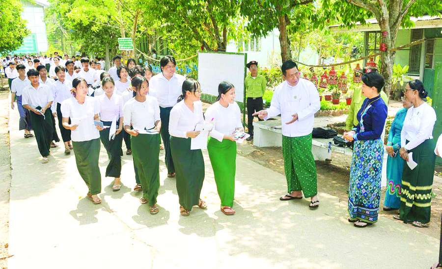 ပညာရေးဝန်ကြီးဌာန ဒုတိယဝန်ကြီး ဦးနေမျိုးလှိုင်သည် ကျောင်းပြင်ပနှင့် တစ်သက်တာပညာရေးဦးစီးဌာန ညွှန်ကြားရေးမှူးချုပ်၊ ရှမ်းပြည်နယ်(မြောက်ပိုင်း) ပြည်နယ်ပညာရေးမှူး(ရုံးခွဲ) ညွှန်ကြားရေးမှူး၊ သက်ဆိုင်ရာတာဝန်ရှိသူများနှင့်အတူ ယနေ့နံနက်ပိုင်းတွင် ကျောက်မဲမြို့နယ် အမှတ်(၁)အခြေခံပညာ အထက်တန်းကျောင်း၊ နောင်ချိုမြို့နယ် အမှတ်(၁) အခြေခံပညာအထက်တန်းကျောင်းရှိ စာစစ်ဌာနသို့ သွားရောက်၍ ၂၀၂၆ ခုနှစ် တက္ကသိုလ်ဝင်စာမေးပွဲ တတိယနေ့ သင်္ချာဘာသာရပ်ဖြေဆိုကြသည့် ကျောင်းသား ကျောင်းသူများ၏ အုပ်ထိန်းသူများနှင့် လိုက်ပါပို့ဆောင်အားပေးကြသည့် ကျောင်းသားမိဘများ၊ တာဝန်ရှိသူဆရာ ဆရာမများကို တွေ့ဆုံအားပေးစကားပြောကြားသည်။