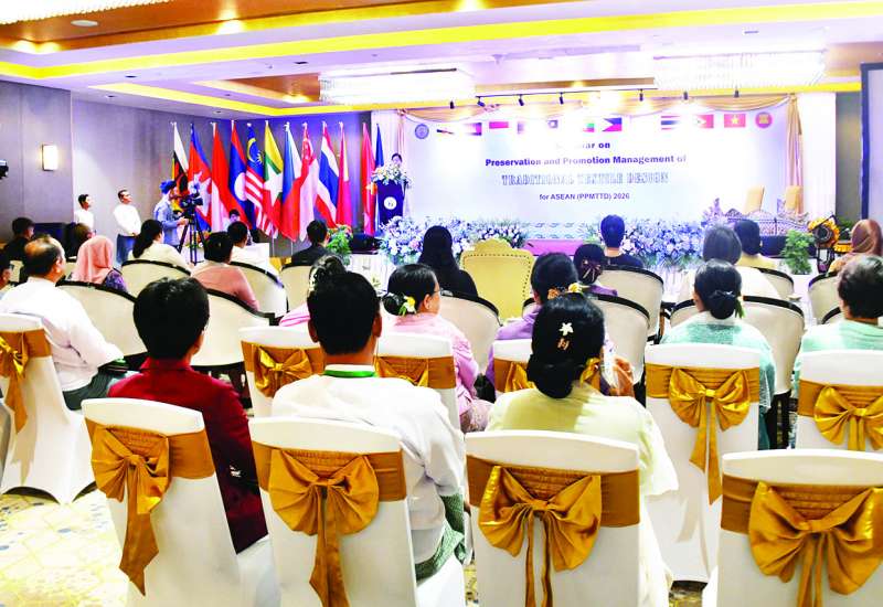 အာဆီယံနိုင်ငံများဆိုင်ရာ ရိုးရာအထည်ဒီဇိုင်းများထိန်းသိမ်းရေးနှင့် မြှင့်တင်ရေးစီမံခန့်ခွဲမှုဆွေးနွေးပွဲကို ယနေ့နံနက်ပိုင်းတွင် ရန်ကုန်တိုင်းဒေသကြီး ကမာရွတ်မြို့နယ် ပြည်လမ်းမပေါ်ရှိ Novotel Yangon Max Hotel ၌ ကျင်းပသည်။