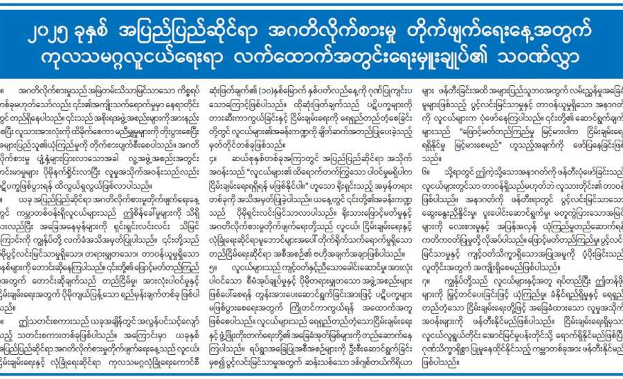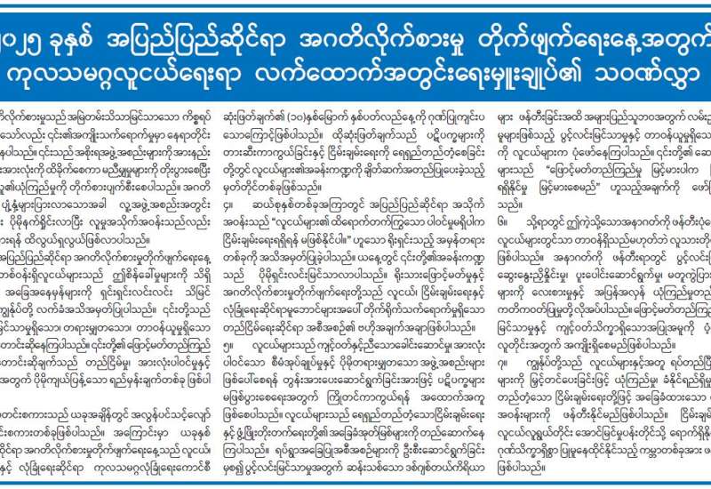 ရန်ကုန်မြို့နှင့် မန္တလေးမြို့အတွက် ရည်ညွှန်းလက်ကားဈေးနှုန်းများနှင့် ပြည်ထောင်စုနယ်မြေ နေပြည်တော်၊ တိုင်းဒေသကြီး/ပြည်နယ် မြို့တော်များအတွက် ရည်ညွှန်းလက်လီဈေးနှုန်းများ