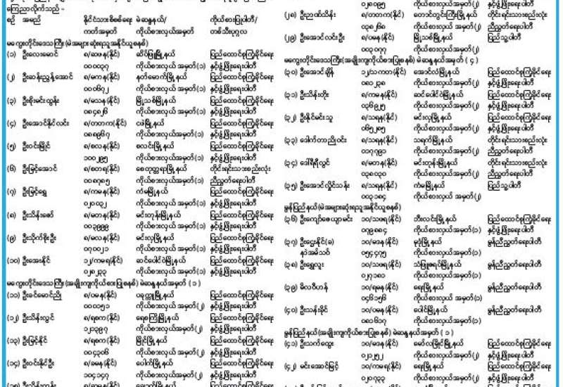 တိုင်းဒေသကြီးလွှတ်တော် သို့မဟုတ် ပြည်နယ်လွှတ်တော်ကိုယ်စားလှယ်အဖြစ် ရွေးကောက်တင်မြှောက်ခံရသူများ အမည်စာရင်းကြေညာခြင်း