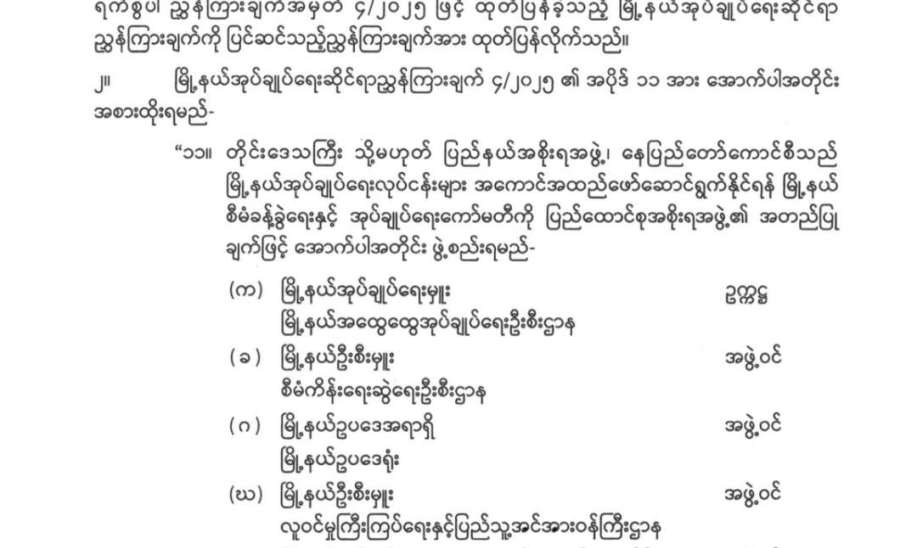 မြို့နယ်အုပ်ချုပ်ရေးဆိုင်ရာညွှန်ကြားချက်