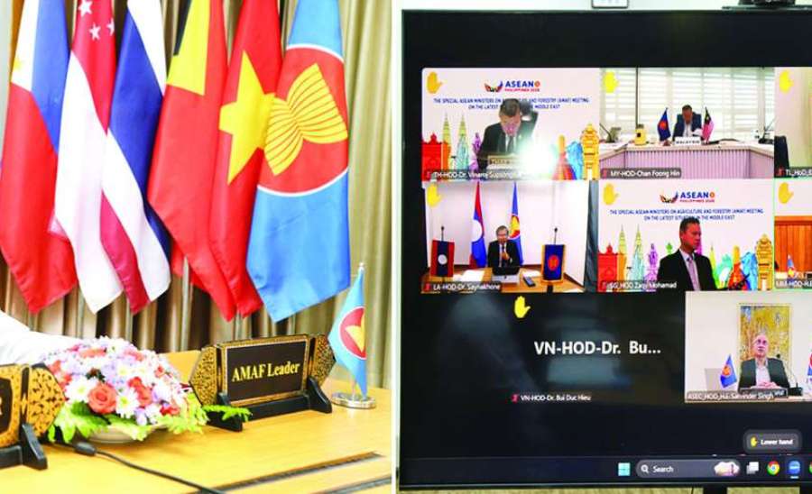 အာဆီယံအလှည့်ကျဥက္ကဋ္ဌ တာဝန်ယူဆောင်ရွက်နေသည့် ဖိလစ်ပိုင်နိုင်ငံက ဦးဆောင်၍ အွန်လိုင်းစနစ်ဖြင့် ယနေ့တွင် ကျင်းပသည့် အရှေ့အလယ်ပိုင်းဒေသ၏ နောက်ဆုံးအခြေအနေ များနှင့်ပတ်သက်သည့် အာဆီယံလယ်ယာစိုက်ပျိုးရေးနှင့် သစ်တောဆိုင်ရာဝန်ကြီး