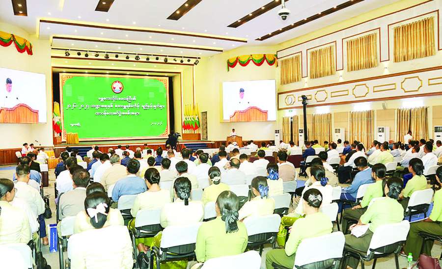 နိုင်ငံတော်သမ္မတ၏ လမ်းညွှန်ချက်အား ထပ်ဆင့်ရှင်းလင်းခြင်းနှင့် အားကစားရေးရာဝန်ကြီးဌာနမှ ညွှန်ကြားရေးမှူးနှင့်အထက် အရာထမ်းများနှင့် တွေ့ဆုံခြင်းကို ယနေ့မွန်းလွဲပိုင်းတွင် နေပြည်တော်ရုံးအမှတ် (၃၁) ရှိ အားကစားရေးရာဝန်ကြီးဌာန အစည်းအဝေးခန်းမ၌ ကျင်းပသည်။